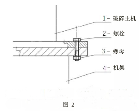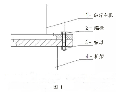 如圖1所示,破碎主機與機架通過螺栓和螺母連接,破碎主機與機架之間沒有緩沖和減振裝置。由于螺栓彈性模量較大、變形量較小,因此本方案視為剛性連接。