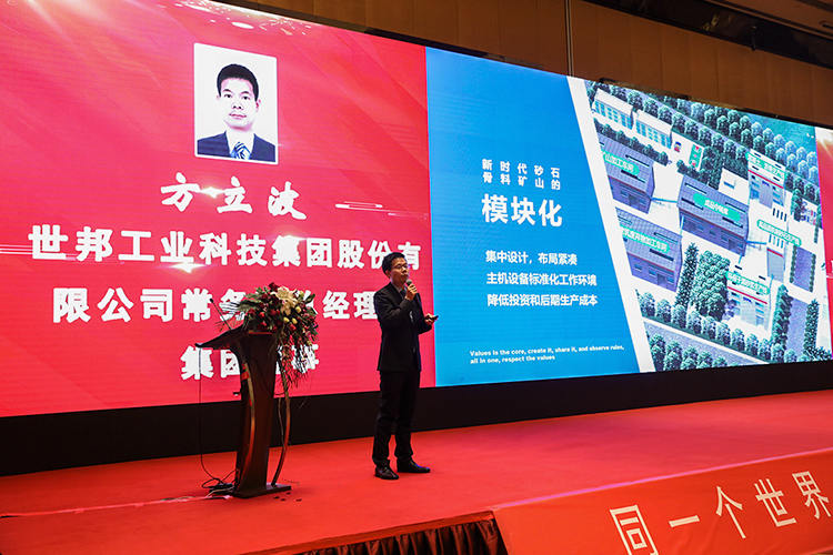 報(bào)告中,方總分點(diǎn)闡述了世邦在打造骨料礦山項(xiàng)目時對“綠色化、安全化、模塊化、工業(yè)化、智能化、品質(zhì)化”六大設(shè)計(jì)理念的堅(jiān)守,間接解讀了世邦集團(tuán)多年來如何吹響高質(zhì)量發(fā)展號角,實(shí)現(xiàn)了從單一裝備供應(yīng)商到綠色礦山一體化落地解決方案專家的身份轉(zhuǎn)型。