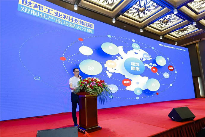 作為本次會議協辦單位,世邦集團積極參會。資源再生裝備事業部營銷總監邢阿勁在會上發表題為《建筑固廢資源化利用裝備及成套解決方案》主旨報告。