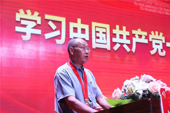 會上,世邦集團終身榮譽黨委書記張天才帶領大家學黨史。