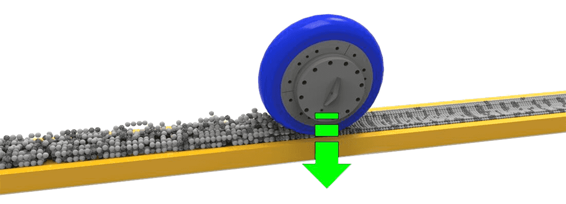 為了避免傳統(tǒng)磨機研磨過程中出現(xiàn)的物料停留時間長,重復研磨,含鐵量高等問題,我們專門設計了獨特的輥套和襯板研磨曲線。該設計更容易形成料層,一次粉磨獲得的成品率高,不僅極大提高了磨機的工作效率,成品的白度和凈度也更高。