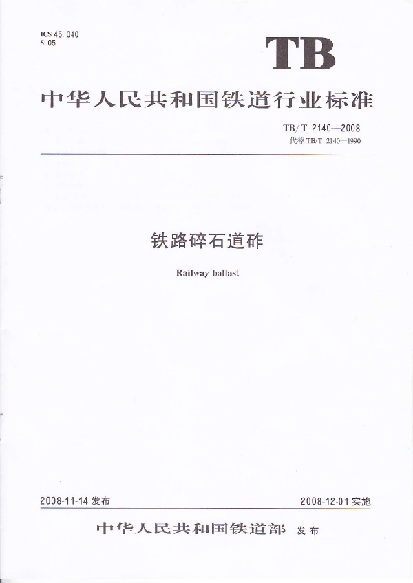 本標準規定了鐵路碎石道砟的技術要求、檢驗規則和運輸、貯存、驗交。明確對道砟粒徑、級配、顆粒形狀及清潔度的檢驗指標;對道砟集料壓碎率指標值做出規范;對道砟運輸貯存提出了更為嚴格的要求,保證出場上道道砟的級配符合本標準的相關要求。