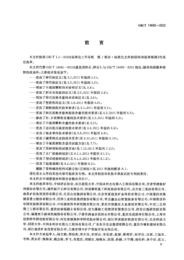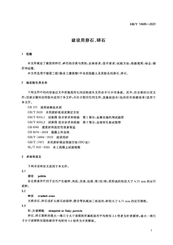 建筑用石料的生產不僅會影響自然環境,還影響工程建設質量。隨著工程建筑對石料的消耗不斷增加,石料的來源趨于復雜,同時隨著工程技術的進步,對混凝土質量要求提高,對石料的質量要求也不斷提高。本標準適用于建設工程中水泥混凝土及其制品用卵石、碎石。